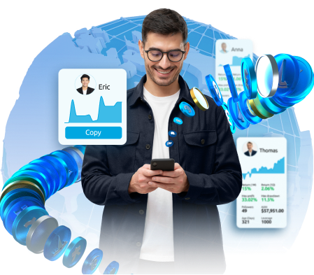 Explore top-performing traders and hand-pick the ones you want to copy, evaluating their performance data, risk appetite, and unique strategy.